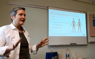 Den 23 februari 2020 gästades vi av sjuksköterskan Kajsa Hübinette från medicinteknikföretaget BD där hon är produktspecialist. Hon höll ett mycket intressant och lärorikt föredrag för oss. Ni som missade det missade verkligen möjligheten att få viktig information. Dessutom är Kajsa en mycket bra föreläsare som lever sig in i det hon pratar om. Hon bjuder verkligen på sig själv. BD står för Becton, Dickinsson and Company. Två handelsresande (Maxwell W. Becton och Fairleigh S. Dickinson) i medicinteknisk utrustning träffades på ett tåg och började prata. De var överens om att kvalitén på det de sålde inte var så bra. De ansåg båda att det fanns god möjligheter till förbättring och beslöt att bilda ett nytt företag tillsammans. Detta hände 1897. Ledordet för företaget skulle vara kvalité och därför sker all tillverkning inom företaget så att den kan garanteras. 1924 skapade BD världens första insulinspruta. De var också först med att tillverka 4 och 5 mm pennkanyler. (BD:s svenska hemsida) |