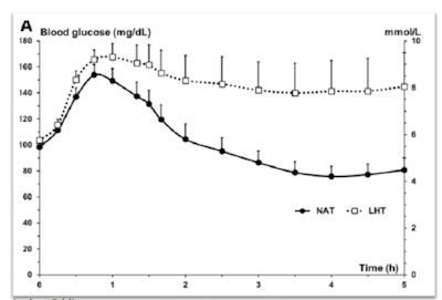 ![]() Blodsockernivån när man injicerar i en fettkudde (övre kurvan) och i frisk vävnad (nedre kurvan) Bilden från Anders Frid (Diabetesläkare i Skåne) |